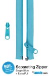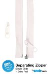 ByAnnie's 50" Separating Zipper + Extra Slide is a great addition to your sewing collection. This zipper is perfect for coats, garments, specialty bag construction, home decor, and anywhere that a separating zipper is needed. Like all ByAnnie Handbag Zippers, the 50" Separating Zipper is a YKK #4.5 nylon coil zipper with a wide tape. This makes it easy to install and robust enough for everyday use, yet unobtrusive on your projects. Available in 14 colors — which coordinate with ByAnnie's Lightweight Mesh, Fold-over Elastic, and other Handbag Zippers — you have a wide variety of colors to complement your project.